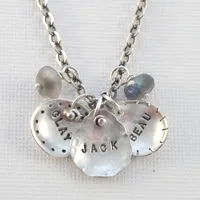 My grandmother always wore a large butterfly locket containing pictures of her favorite little people so she could "keep us close to her heart." I like the idea of honoring my kids, but wearing a giant silver insect–or most any locket for that matter–just isn’t my thing. Fortunately, my custom name charm necklace crafted by prolific jewelry designer/mom Suzanne Myers is exactly my thing. Suzanne’s necklaces feature hand cut sterling charms with a modern but organic sensibility, each personalized with your child’s name. Draped on your choice of chains, it makes more of a style statement than my grandmother’s locket ever did.