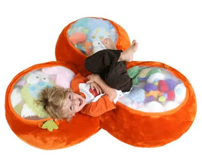 Take heart: the awesome and oh-so-clever Animal Bags from Boon may be the answer to your kids’ unwieldy collections. The Animal Bags are just like bean bags except you fill them with all those stuffed animals. Voila–your child now has a comfy seat and you have handy storage to stash away the you-know-whats. Even better, you’ll never have too worry about those earth-unfriendly foam beans spilling all over the place.
