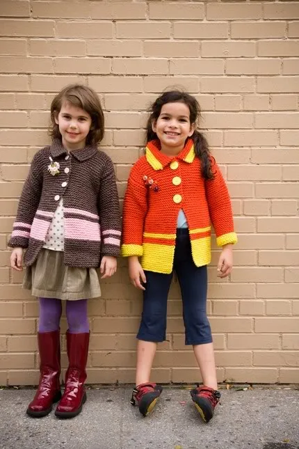 Brooklyn mom (and Parents magazine art director) Amanda Kirk designs these very cool two-toned sweater jackets for girls, while her Ozzie mum personally knits them from soft Australian wool. The length makes them great as Fall outerwear turned Winter layers, and I love details like giant buttons and a quirky little pin at the breast like a wooden bear or a bunch of grapes.