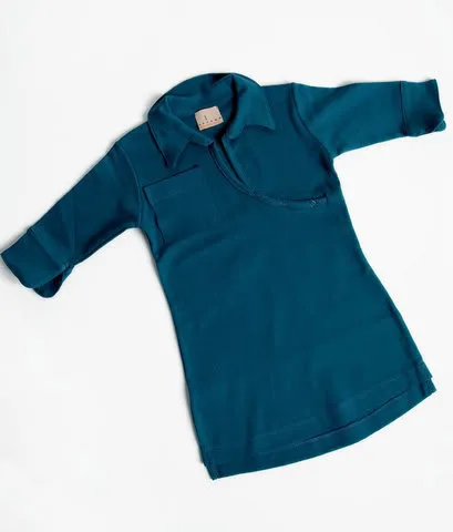 At last we’re happy to have spotted it online at the very cool Love You Baby. This stretchy, heavyweight cotton dress is such an awesome transition pieces for kids right now, when it’s not quite Spring and not quite winter. Simple but with fantastic details, it would look superb over jeans, or in a few months, accessorized with nothing but those cute little naked knees. It also looks great as a simple polo-style shirt.