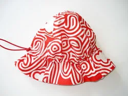 The sunhats from Swedish label Plastisock are totally rocking my world. If you want a break from the twill Gilligan hats and flowery bonnets, youโll love their bold, vibrant fabrics like the red peace and green applefield prints shown here.