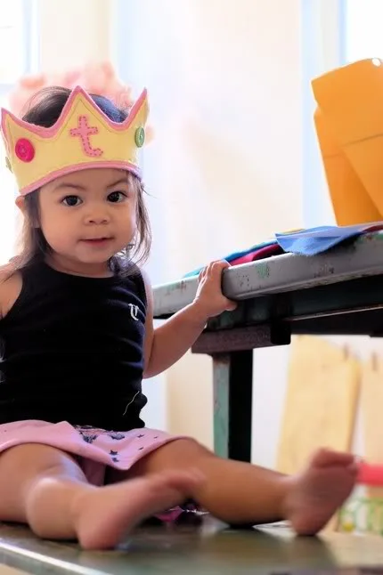 Granted, they’re not really that girlie, except for those of us more likely to dress our daughters in pants and a baseball cap than a tutu. Mom Rubyellen Bratcher creates each simple and sweet crown (love the flower one too!) by hand, adding a comfy fabric covered elastic to the back of each, so the crowns actually fit and stay on her head. Smart.