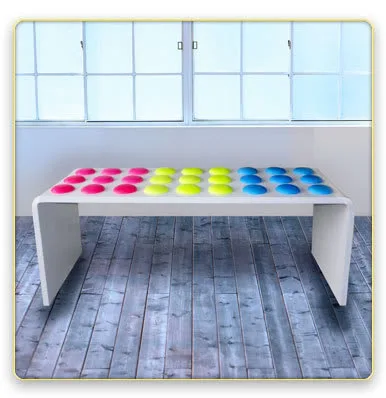 No surprise then that I fell instantly madly in love with Jellio which designs heaping amounts of fun into every piece that they make. Inspired by candy, classic toys, and other icons of childhood, I’m going nuts for the candy button bench complete with rubber “candy dots,” the Lite Brite inspired table that glows if placed over a light source, and clocks fashioned out of vintage gumball machines.