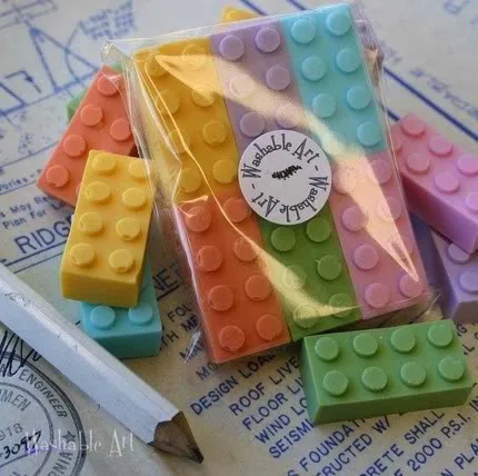 I am going nuts for the handmade LEGO(ish) soaps we just discovered from the California-based etsy shop, Washable Art. They are adorable, they’re original, and hello? They are $5 a pack. No wonder she can’t keep them in stock.