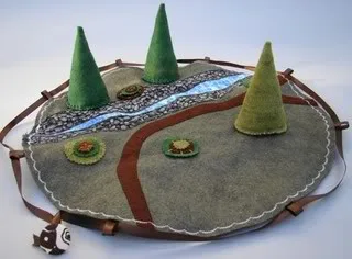 Artist and mom Shannon Duffy originally created these imagination inspiring totes for her own kids and then decided to share them with others – hooray for that! She hand stitches different play scenes like a forest (pictured at top) or beach on wool felt, and includes pieces that kids can move around. It all folds up flat in a handy self-contained tote made with beautiful vintage fabrics.