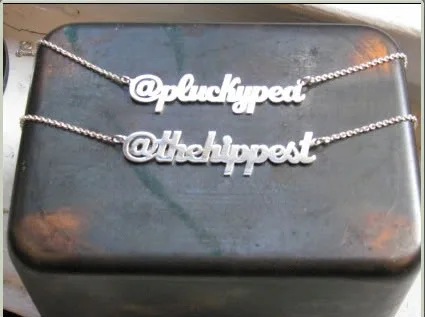 Find personalized Twitter necklaces from Survival of the Hippest and for a super-sneaky $10 discount on your order, click the finch on the SOTH homepage. ,