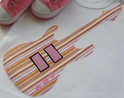 As my oldest daughter starts to get more into fairies and princesses and all things pink (God help me), I’m still trying to keep her just a wee bit rock ‘n roll. So I love the looks of this handmade guitar lap tee that feels both girlie and rocking all at once.