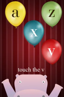 Three of the iPhone apps I have lined up for her are Hippo Hooray‘s Colors, Shapes, and Letters, which are gorgeously done and quite absorbing. Simple premise: The hippo tells you what to touch (letter, color, or shape) and congratulates when you’ve chosen correctly.