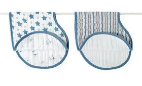 Ever since I was introduced to the Aden & Anais muslin swaddlers, I’ve anxiously awaited (and subsequently been blown away by) their new products, most recently the baby sleep sacks. So I’m not surprised that I was instantly smitten with their new genius Burpy bibs.