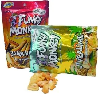 But when I pack Funky Monkey dehydrated fruit snacks, (warning: site has sound) which are basically three full servings of deyhdrated fruit and some spices, they always get eaten.