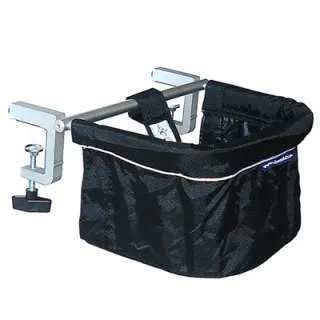 It’s the perfect little folding high chair for those who can sit up on their own but are way too small and wiggly to sit in a grown-up chair comfortably. Attaching it doesn’t take a Masters in Engineering, but rather a few twists of the knobs which secures the sturdy aluminum frame to a tabletop or counter.