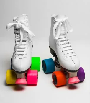 fabulousness of the white bootie style roller skate–no inline wheels,