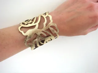 I can’t quite decide which EmilydeMolly laser cut leather cuff I want. I’m not usually a flower person but the metallic gold rose cuff (pictured) is fantastic. But then my eye caught the red ornate cuff design which I like as well. Oh, who am I kidding? I’d be happy with any of them. But at just $35, I might not need to pick favorites. -Kristen