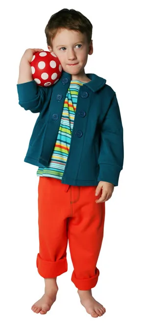 Since moms of girls can get a little tired of all that pink they’ll get at the baby shower (let’s admit it), we have always liked that Zutano gives girls more choices. The new Balalaika prints are so cool, and look great with blues, oranges, reds and greens. How cute is this little little a-line jumper which is a little more stylized than just a onesie, but still has a convenient snapsuit bottom. Also check out the print in a Baby Bubble. Sweet!