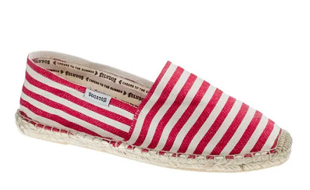 The rubber sole is a must in their homeland of Spain where cobblestones abound. At J Crew you’ll find the affordable Soludos Espadrilles flats in red and white striped canvas (shown at top), blue chambray and more. ($36)