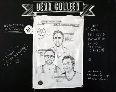 I make it no secret that I have a huge crush on the Canadian Ryans: Ryan Reynolds and Ryan Gosling. But since I’m not 15 anymore, I’m pretty sure the glossy posters on my ceiling or calendars on my wall are out of the question. But a tea towel? Oh that’s more than fair game. You better hurry and snatch up the Hey Girl I’d Rather Be Doing Dishes tea towel before I buy it. Artist Colleen Pugh has translated the hugely popular Ryan Gosling “Hey Girl” Internet meme into a must-have kitchen accessory for R-Go fan. (I just made that up! Good, right?)