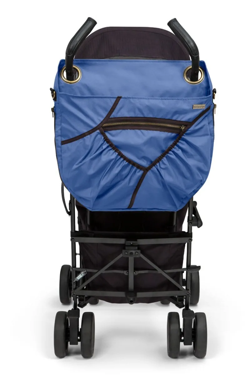 The grommets slip perfectly onto a double handlebar stroller, while a set of snaps also allows it to attach strategically to single handlebar strollers. When you slide it off your buggy, it then slips seamlessly across your body, leaving your hands free to push your little one on the swings or help your kiddo navigate the playground. Nicely done, Baby Cargo. -Melissa