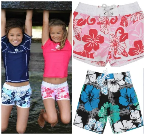 For both boys and girls you’ll find adorable long-sleeve sunsuits that are great for infants and toddlers; but my very favorite have to be the hibiscus boardies, which my girls are loving! We tried a pair and found them to be a little looser than expected–you might size down if you’re on the fence or have a skinny girl like mine.