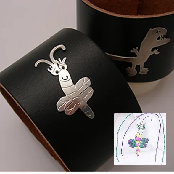 Years ago we discovered the fantastic craftsmanship of Mia Van Beek of Formia Design, who takes kids’ original butterflies, dinosaurs and happy faces and turns them into amazing silver charms, keychains and necklaces you’ll want to show off. But should you be looking for something a little more modern, I’m thrilled to find the new wide leather cuff she’s added to the mix. Even better, there’s still time to order for Mother’s Day delivery.