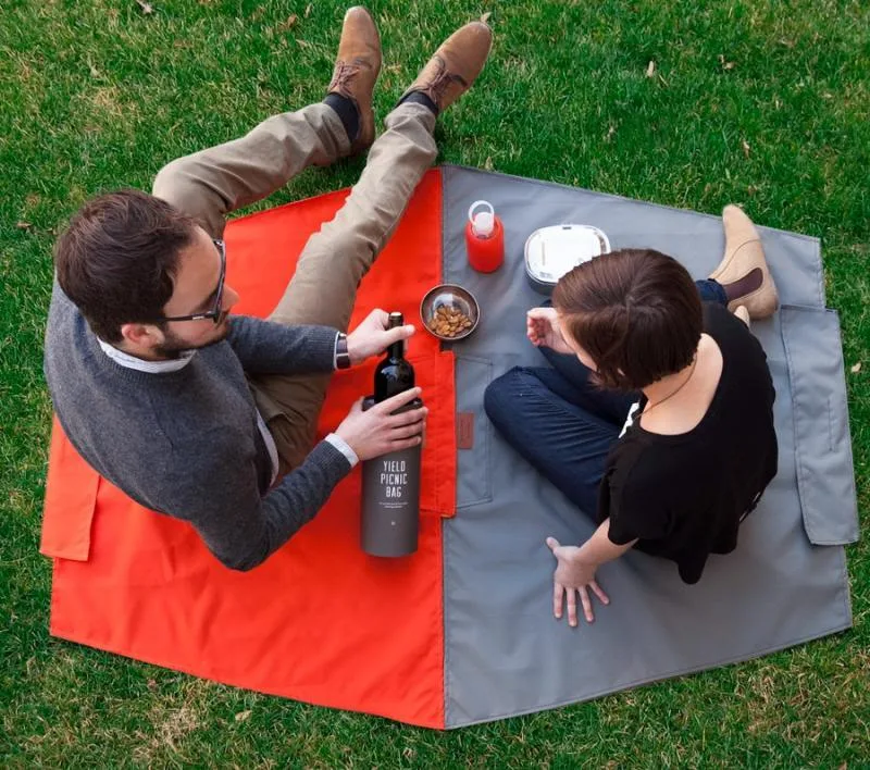 Pack your next picnic feast in the portable picnic blanket tote bag by Yield Design Co.