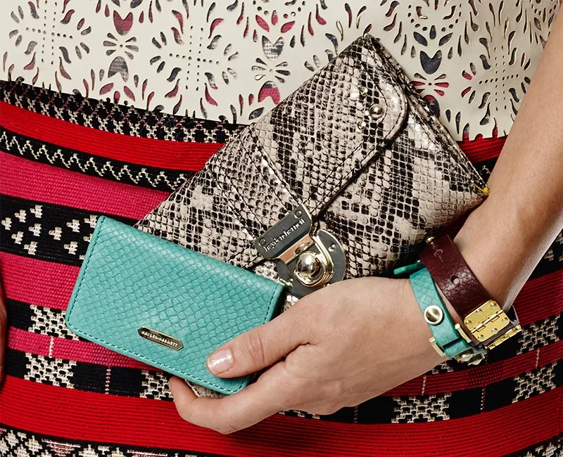 Through Sunday, save 25% on the new wallets, including this fabulous leather Bardot Pouch with python print. I’m having trouble choosing between the solid practical black (always my inclination), a poppy fun green, or the more daring multi colored python print.