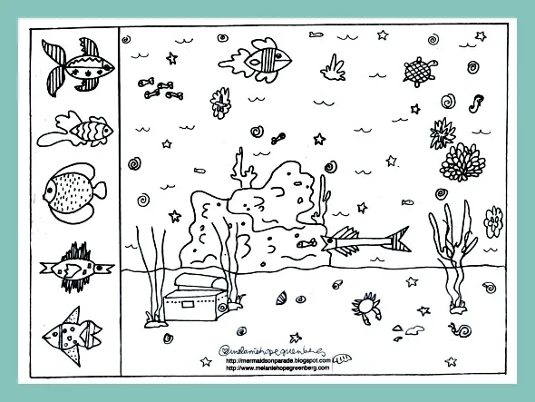 At top: Ocean Coloring Page with puppets, Melanie Hope Greenberg