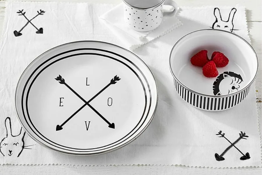 One day that little baby will be eating solids, and this super cute but deceptively tough Emily & Meritt baby feeding set helps keep your table looking sophisticated but still fun.