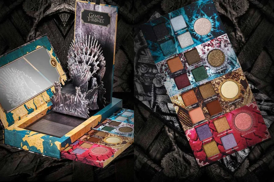 You’ll find a crazy Game of Thrones 20-shadow pop-up palette inspired by the jewel tones, neutrals, and metallics of Westeros, to let you “declare your allegiance to House Targaryen, House Lannister, House Stark” but at this point, I’d say, “go Team Living People.”